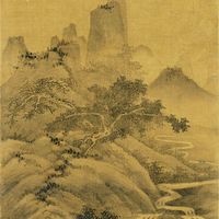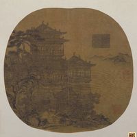 元 佚名 深山塔院图页绢本