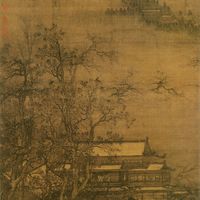 宋 佚名 寒林楼观 绢本